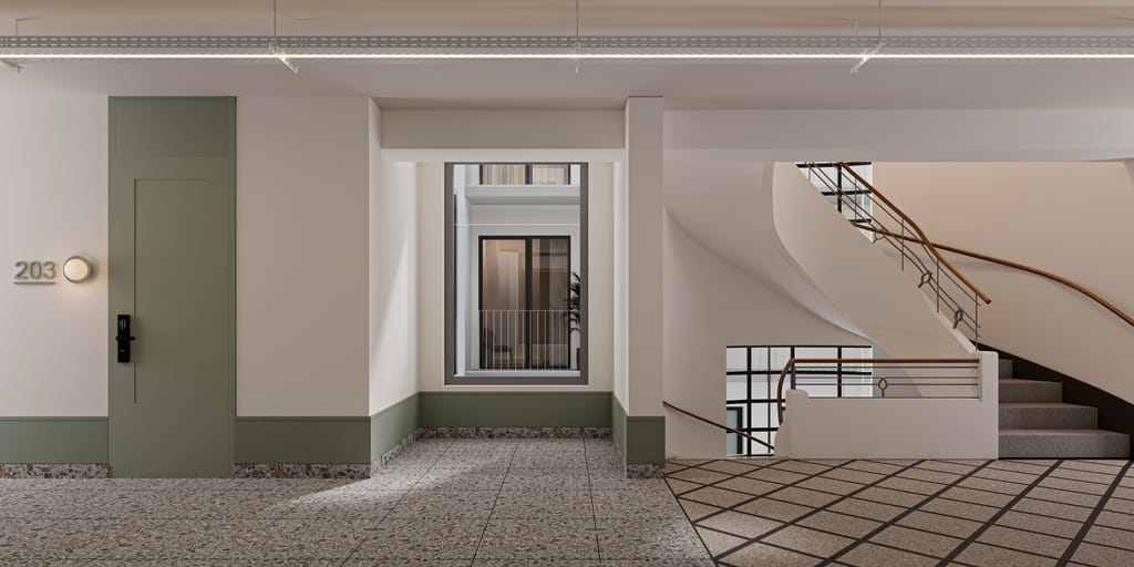 "Un edificio Bauhaus de 1945, completamente renovado para la vida moderna."